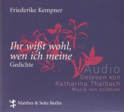 friederike kempner (1829 - 1904) ist ein kuriosum der deutschen literaturgeschichte. schon zu lebzeiten wurde sie mit ihre gedichten zur klassikerin des unfreiwilligen humors. bei geselligen anlässen gehörte es bis weit ins 20. jahrhundert zum guten ton, ihre gedichte vorzutragen. meisterhaft interpretiert von katharina thalbach bringen sie auch heute jeden hörer zuverlässig zum lachen. dennoch: hinter all ihren grotesken gedichten verbirgt sich ein tief fühlendes herz und so viel naivität, daß wir die waffen strecken. (pressetext)